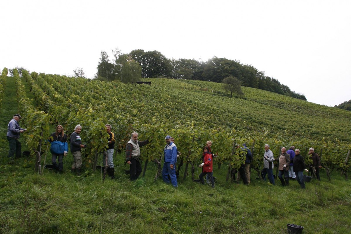 Malerisch schmiegt sich das Örtchen Zell am Ebersberg an den Schloßberg - eine kegelförmige Erhebung, die urkundlich belegt schon 1275 mit Reben bepflanzt wurde. Da Zell einst ein wichtiger Durchgangsort für Reisende war, thronte eine mächtige Burg auf dem Gipfel des Schloßbergs. Heute findet man nur noch Mauerreste von der Burg, die Reben werden aber nach wie vor dort angebaut. Besonders die steile Südlage des aus reinem Keuper bestehenden Schlossberges ist begehrt, daher bauen wir dort unsere Spitzensorten Riesling und Spätburgunder an.