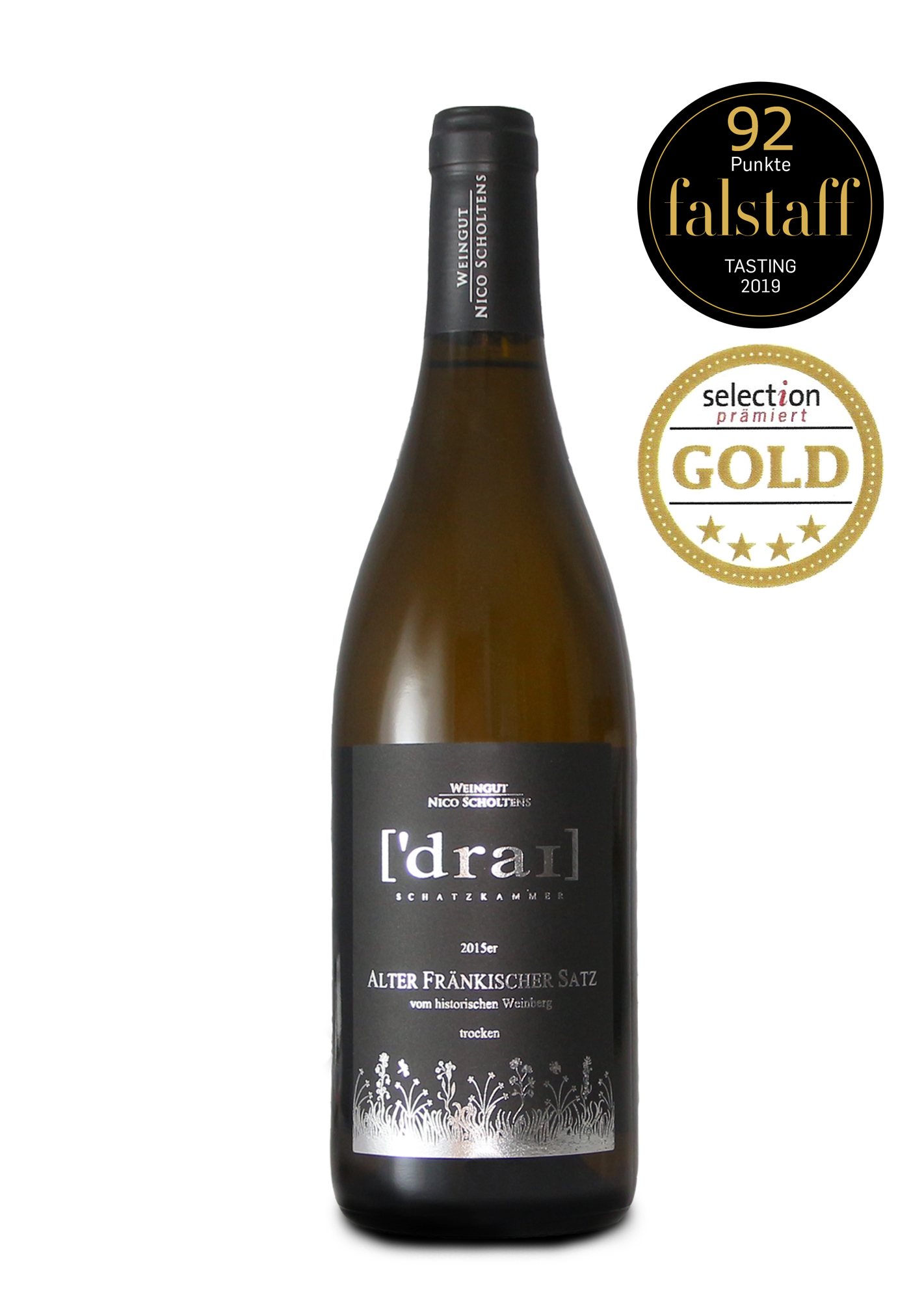 falstaff: 92 Punkte - empfohlen im falstaff-Weinguide 2020! "Aromatisches Bukett mit Blüten, Blumen, Kräutern, Stein- und Kernobst: Das ganze Potpourri des Alten Fränkischen Satzes. Am Gaumen mit schlanker Textur und kristallinem Ausdruck, aber auch mit Schmelz, dicht verwoben, komplex und natürlich delikat."