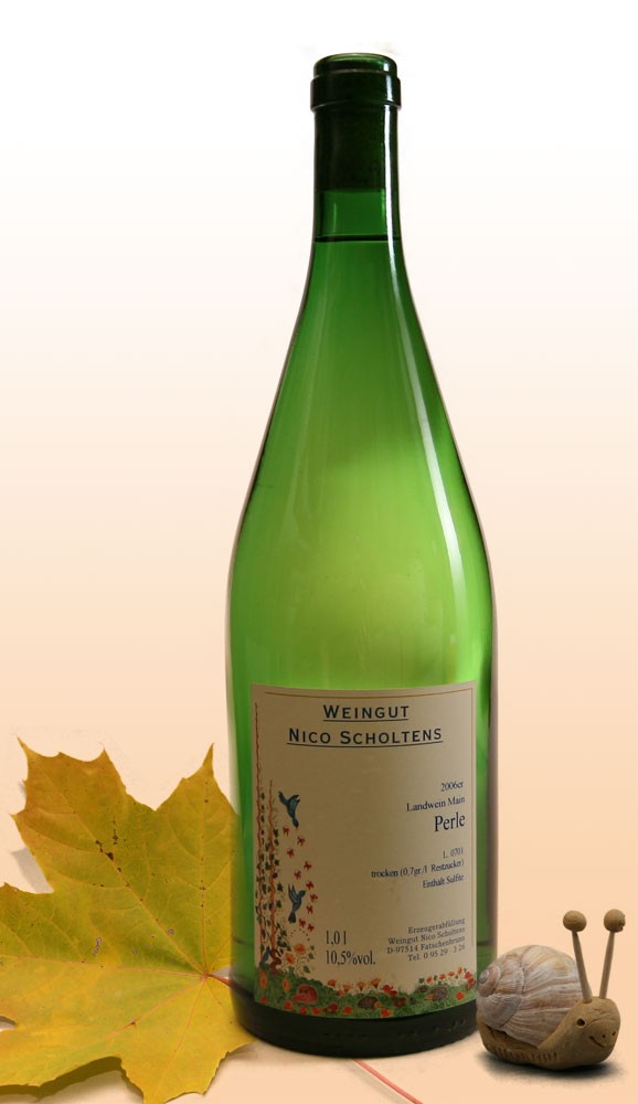 Die Perle von Alzey ist eine Kreuzung aus Gewürztraminer und Müller-Thurgau. Auffallend an der Sorte sind die kleinen, rosa gefärbten Trauben. Die Sorte ist mittlerweile leider sehr selten geworden. Die Weine sind leicht, mild und weich blumig. Die starke Aromatik, die an Traminer erinnern kann, tritt aber nur in guten Jahrgängen in den Vordergrund. Durch die typisch geringen Säurewerte, sind Perle-Weine sehr beliebt bei Liebhaber milder Weine.