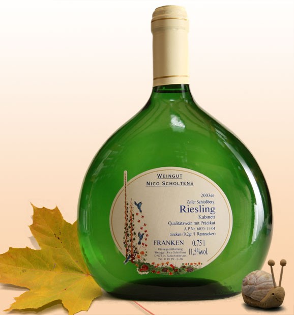 Frankens sonnigste Lagen beansprucht der König der Weißweine. Die kleinen, dichten Trauben verraten nicht, was in ihnen steckt: Rasse, Eleganz, belebende Fruchtsäure und hoher Extraktgehalt. Durch späte Reife entfaltet sich der Charakter dieser Sorte vollständig. Fränkische Rieslingweine sind von gehaltvoller Raffinesse und perfekt geeignet für hohe Lagerfähigkeit über viele Jahre.