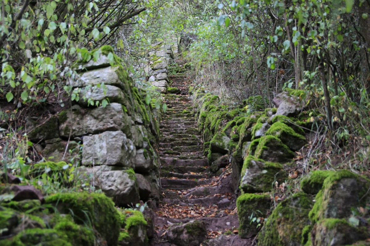 Eine der wenigen erhaltenen Terrassenlagen in Steinbach. Durch die Terrassierung mit Sandsteinmauern wurde der sehr steile Hang in lauter flache Parzellen, sogenannte Schränke, unterteilt. Die Weinbergsmauern heizen sich tagsüber auf und geben auch in der Nacht noch Wärme ab. Terrassenlagen können nur rein von Hand bearbeitet werden und sind daher heutzutage nicht mehr besonders beliebt. Schade - sie sind nämlich nicht nur wunderschön anzuschauen, sondern bringen auch deutlich bessere Weine hervor!